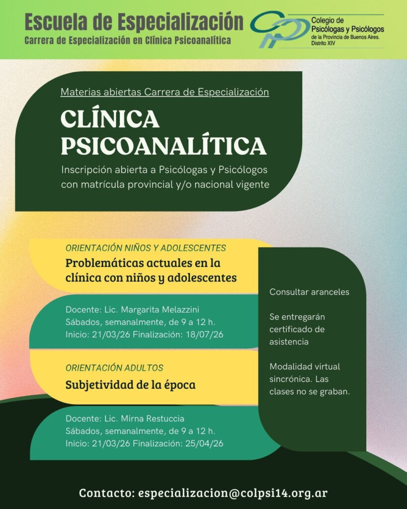 Materias abiertas de la Carrera de Especialización en Clínica Psicoanalítica